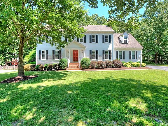This updated home in Short Pump/ Western Henrico County w/5 bedrooms, 2 1/2 baths, & vaulted sunroom on a 0.4 acre cul de sac lot w/rear entry garage & fenced yard!! The PRICE is recently REDUCED and the sellers are offering $3000 toward your CLOSING COSTS!! New windows! Hardwood floors on the entire first floor in this updated & upgraded home! Formal living room opens into dining room w/picture frame molding. Updated kitchen w/medium toned cherry cabinets, silestone countertops w/ undermount stainless sink, new stove, large nook & panty. Kitchen opens into family room w/oversized doorway. Spectacular updated family room w/light gray painted brick fireplace & wainscotting, HW floors, & french doors into sunroom. Vaulted sunroom has windows all around & door to large deck & fenced rear yard. 1st floor mudroom/laundry rm w/space for cubbies.Hardwoods in upper hallway. Pretty master bedroom w/ large walk in closet & updated bath w/ ceramic tile floors, raised vanity w/ 2 sinks, granite countertops, updated shower w/ ceramic tile & seamless shower door, vaulted ceiling & skylight. All bedrooms are nicely sized with spacious closets, neutral carpet, & fans w/ lights. 2nd floor Rec Room or BR#5. Walk up attic. Private fenced rear yard. Beautiful neighborhood close to Short Pump Mall! Excellent Henrico County Public Schools!