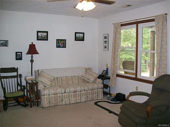 Vinyl rancher nestled on 1.5 private wooded acres features spacious and bright living room with berber carpet, 3 bedrooms each with 2 double closets, laminate flooring, 2 full baths, kitchen with dining area open to living room also with laminate flooring. All rooms have ceiling fans. Utility room with lots of cabinets. Range, refrigerator, dishwasher, washer and dryer all convey with the property. Vinyl replacement windows, new hot water heater, 12' x 12' deck, front porch, detached storage shed, 30,000 BTU Propane Wall Heater will heat the whole house. Deep well and a shallow well for back up. This home offers rural living but convenient to community shopping.