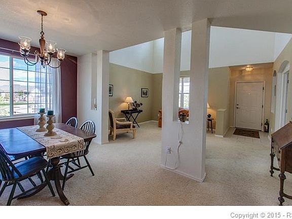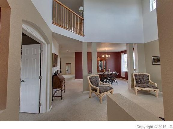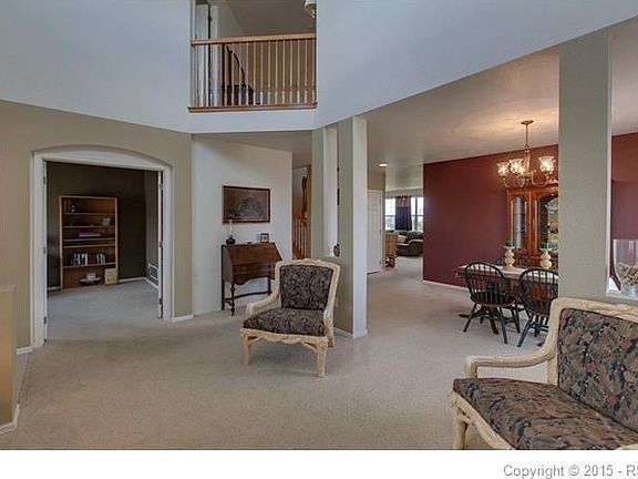 Immaculate 2-story home with 4 bedrooms, 3 baths, 4 car garage on a .50 AC lot with mountain views. Formal living room/dining room, french doors leading into the main level office, gourmet kitchen w/large center island, 42" cabinets and gas stove overlooking large family room with gas fireplace and built ins. Four large bedrooms on upper level. Great master with adjoining sitting area, 5 piece bath, double walk in closets. Awesome cul-de-sac location in the Woodmen Hills neighborhood w/rec center, pool, parks. Don't miss!!