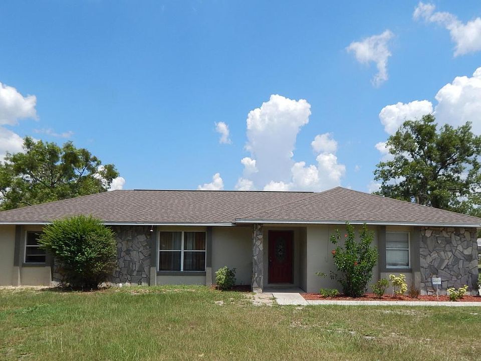 This spacious home rests on over 1 acre of land. Living & Dining area have vaulted ceilings w/ laminate floors, kit. & bathrooms include tile floors. The utility is well over-sized & can be used as a den or family rm. Plenty of storage & closets. Fla. rm. for extra privacy. New roof in 2013, new AC in 2014. Separate carport. This Home is ready for you and your family, only minutes from Lake Weir & The Villages.