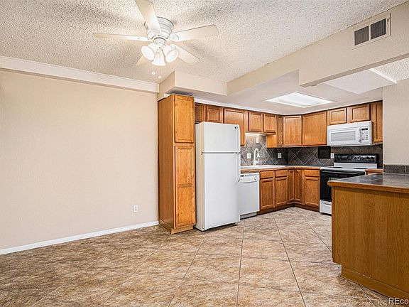 Perched on the top floor, this spacious 3-bedroom, 2-bath Cottonwood Villa condo offers one of the most desirable views in the community. Enjoy your morning coffee or evening wind-down on the private balcony, or take peaceful walks along the nearby creekside paths and pond—just steps from your front door. Inside, the home welcomes you with fresh paint, professionally cleaned carpet, and a bright, open floor plan designed for comfortable living. The generous living area flows seamlessly into a separate dining space and a thoughtfully appointed kitchen with ample cabinetry, generous counter space, and all major appliances included—refrigerator, stove/oven/range, dishwasher, and microwave. The well-designed layout includes three spacious sized bedrooms, ideal for guests, a home office, or growing households. The primary suite is a true retreat, featuring a large bedroom, private en-suite bathroom, and a roomy closet. Two additional bedrooms share a full hallway bath, making the home both functional and versatile. Additional features include in-unit laundry with washer and dryer included, one reserved parking space, and easy access to I-25, public transit, shops, restaurants, and local amenities. Whether you're a first-time buyer, downsizer, or investor, this home is move-in ready and offers incredible value in a peaceful, well-located community with secure building with controlled access. Don’t miss the chance to make this top-floor gem your own!