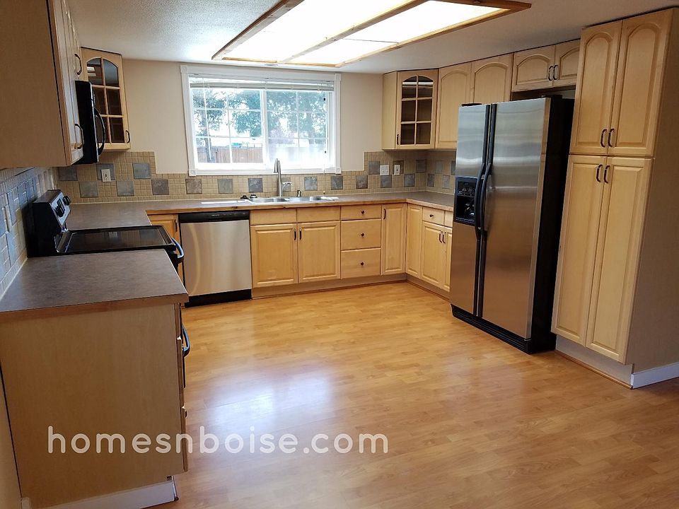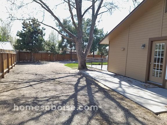 1000 Sq. Ft. Shop! 3 Bedroom + Office, 2 Bath on half acre. 2100 Sq. Ft. Single level. Cul-de-sac location in SW Boise with easy access to I84. Laminate flooring thru entry, dining and kitchen. Large open kitchen with tons of maple cabinets. Refrigerator, glass top range, dishwasher & microwave all provided. Den or office off living room with access to patio. Master suite to die for 20x16 with 12x7 walk in closet. Master bath has dual vanities, corner garden tub with glass block and separate shower with seat lots of tile work. Patio has colored & textured cement that is fenced with wrought iron porch railing. Yard has full sprinklers and very easy maintenance with several large trees, fully fenced for pets. Shop has 220 power and plumbed for a compressor, extra high ceilings, and 2x6 construction. Covered parking area on one side of the shop for toys with plenty of RV parking. Driveway all the way from the front to the rear and out the back to the street. RV dump is installed. Pets ok ask for details. 12142 W. La Pan Dr. From Cloverdale & Overland, go north on Cloverdale, east on Florida, north on La Pan, turn left into 1st cul-de-sac. $2395 per month. Refundable deposit $2395 can be paid half at move in, half in 30 days. 12 month lease. Before calling to view please drive by and check out the area and peek in the windows, the home is vacant. Visit the website on my pictures for an application. Go to Property Search, then to Rental Listings. Raina owns this home, it is not managed by a property management firm, Raina is a licensed real estate agent. Tenant pays all utilities. 12 Month lease.