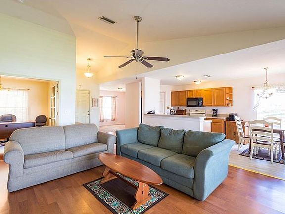 From the second you arrive you will feel the love this home has had! Immaculately maintained this home welcomes you with its great room which is full of light from the windows ahead looking out over the lake view. Features include formal dining room, fourth bedroom equipped with French doors to opt as a den or office, covered screened lanai and fenced yard. A few of the community amenities include parks, basketball courts, and community pool with special kiddie area. Kingsfield is located in a great location, close to shopping, restaurants and the Interstate to head north or Fort Hamer Rd that will be opening up soon to give you easy access to the Lakewood Ranch area.