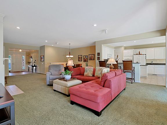 NEW PRICE, MOTIVATED SELLERS. All the heavy lifting has been done for you with the most recent updates. Welcome to this rarely available, meticulously maintained Dearborn model in Del Webb's Sun City. Perfectly nestled on a quiet street and backing to lush trees and wetlands -This home offers the peace and privacy you've been waiting for. Designed for comfort and convenience, this spacious home features an open concept floorplan with 3 generously sized bedrooms, a versatile den, and 2 full bathrooms, all on the main level. The light-filled garden room features floor to ceiling windows with amazing year-round views and 2 sliders walking out the maintenance free Trex deck. The cozy family room with surround sound system and gas fireplace offer beautiful views, while the large kitchen impresses with quartz countertops, GE Profile appliances, recessed lighting, a spacious snack bar and a large eating area with bay window overlooking the lush wetlands, ideal for both casual meals and entertaining. Retreat to the serene primary suite complete with a bay window, crown molding, large walk-in closet with custom organizers and a spa-style ensuite bath with whirlpool tub, dual vanity, and separate shower with tile surround. Additional highlights include extended cabinets in the kitchen and laundry room, professional landscaping with lawn irrigation system, driveway ribbons and an expansive English basement with rough-in plumbing for a future bathroom. Updates include Roof 2013, HVAC 2024 and Water Heater 2023!! All of this in Del Webb's vibrant, amenity-rich 55+ community-where every day feels like a getaway.