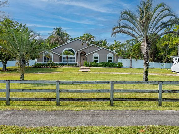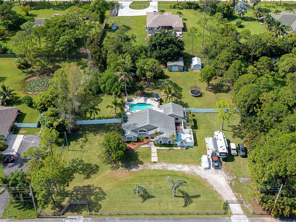 Well maintained CBS home in the heart of The Acreage. No HOA, No restrictions! Bring your boat, RV and all your toys to this little beauty. This 4br/2bath/Den home offers everything you need. Split floor plan with owners suite on east wing and other 3 rooms on the west side. Larger 4th bedroom comes with private fenced patio area to the side. Enjoy the spacious land with 1.64 acres to play with, fully fenced and beautifully maintained yard. There are 2 additional sheds on the property for storage of outdoor equipment. Large patio and pool area in the back which allows for great year round entertaining. Roof 2007, AC 2018, PVC fence 2022. Easy access out to I95, Turnpike, PBI Airport, white sandy beaches, shops, restaurants and world famous golf courses. Pride of ownership lives here!