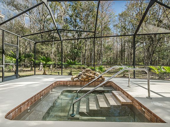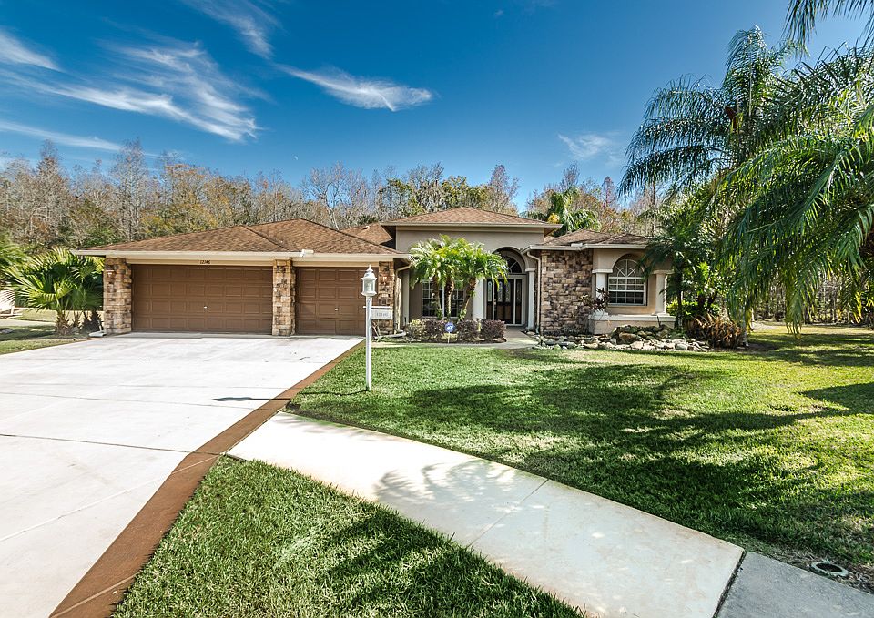 Estate Home on Premium Cul-De-Sac Conservation Homesite. 3/3/3 in sought after Heritage Springs with Built-In Spa! Situated on a large private conservation homesite, this home has much to offer. Over 2700 SF of Living Space, Custom glass doors leading to a formal living room and dining room, beautiful kitchen with wood cabinets, Corian countertops and eat in area all open to spacious family room. Large master suite with walk-in closets and master bath including dual sinks and large shower. Additional features of this home are: Large Bonus Room, Gorgeous Tile Floors, Big Laundry Room, Upgraded Light Fixtures and Fans, Upgraded Landscaping, and 3 car garage. Huge Screened-in Lanai great for outdoor entertaining includes plenty of covered area for shade, Built-in Spa and Outdoor Kitchen. Great home and property for entertaining or for having quiet times enjoying the scenic views. Heritage Springs is a private gated golf course community that offers many amenities - golf, tennis, recreational clubhouse, managed activities, pool & spa, billiard room, onsite restaurant and more...Located in Trinity near beaches, shopping, restaurants, medical and airport.