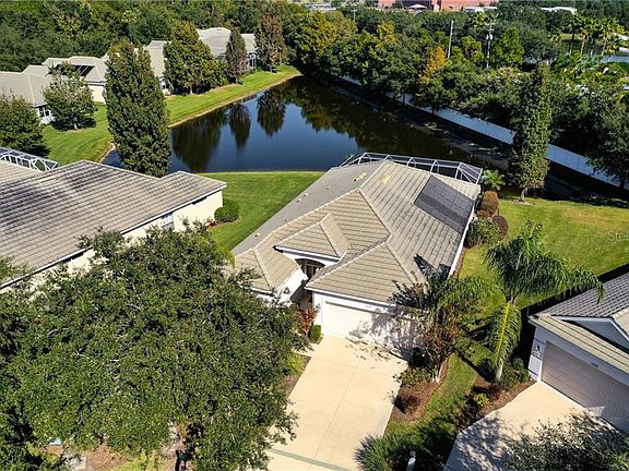 Impeccable condition, low maintenance, 2 bedroom plus den pool home with preferred location on cul de sac lot overlooking picturesque pond. Over $30,000 in upgrades including window treatments, light fixtures, ceiling speaker system, additional cabinetry in breakfast nook,and laundry room, teak wood patio cabinets with granite counters, solar system & salt water system for pool, polymer surfacing of pool deck & patio, ect. High ceilings- diagonally laid tile throughout except for carpeting in bedrooms and den - great room and breakfast room have sliding glass doors opening to covered lanai - solar heated, salt water pool and large deck area are fully screen enclosed - upgraded windows, sliding glass doors, and garage door. Lawn, trees, and shrubbery are HOA maintained. AC new in 2016- range, dishwasher, microwave (2019)- refrigerator & disposal (2017)- River Wilderness Golf Club has optional memberships for golf, tennis, fitness facility, dining, social, ect. Community boat ramp on the Manatee River. Condition is move in ready!