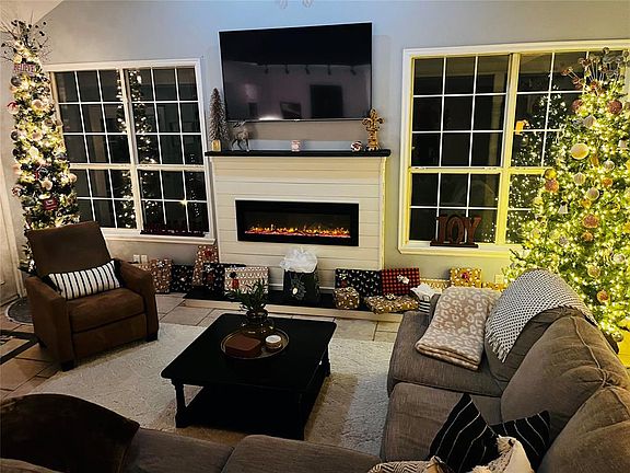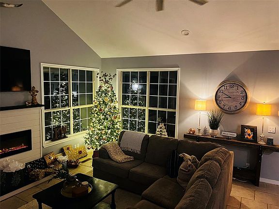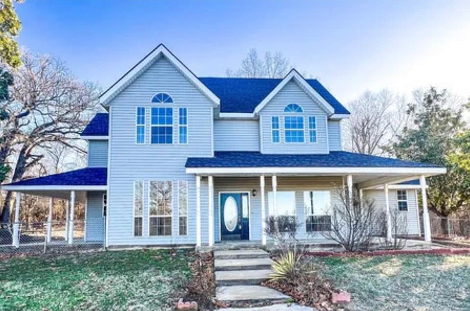 Inside, you’ll find 4 bedrooms and 2.5 baths with custom paint, fixtures, and flooring throughout. The spacious floor plan includes a formal dining area, large living area with vaulted ceilings and electric fireplace, kitchen is a show stopper with tons of cabinets, some newer appliances, island, breakfast bar, lots of storage. Kitchen/living area have tons of windows, natural light and breathtaking views. Primary suite conveniently located downstairs, custom colors, barn door, primary bath has ample closet space, two vanities, tub and stand alone shower. Three bedrooms and a completely remodeled custom bath upstairs provide plenty of room for family or guests. Enjoy the outdoors from the wrap-around porch, surrounded by mature landscaping, a stunning Japanese maple, and abundant wildlife. Additional features include a workshop, 2-car carport, and the privacy of being outside city limits. Major updates add peace of mind with two new HVAC units (2024 & 2025) and a new water well treatment filter installed in 2023. Fenced yard and storm shelter! Located just minutes from Nichols Point, this property is ideal for lake lovers seeking space, comfort, and convenience. If you’ve been dreaming of lake life with room to breathe—this one is a must-see.