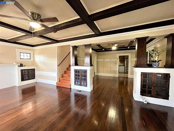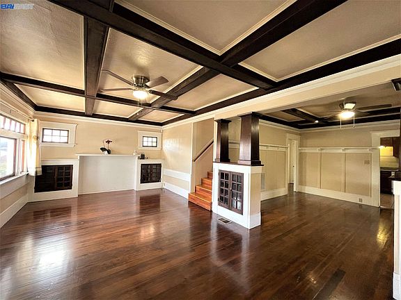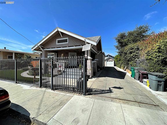 Rare to find 5 bedrooms 3 bath in the main house with original box beams, refinished hardwood floor, situated on a 7500 sqft big flat lot. Big front porch, spacious living room, formal dining room, breakfast nook, laundry room. There are 3 large bedrooms downstairs. The finished attic has 2 more bedrooms, one living room and a full bath. Most windows have just been upgraded to dual pane recently. A detached 1 bedroom/1bath unit (over 400sqft) can generate good rental income to offset your monthly mortgage. Low maintenance front yard has beautiful artificial turf, lots of mature fruit trees. Super long drive way and huge backyard allow you and your guests to park 8-10 cars, plus a good size storage shed. Sewer lateral compliant. The iron electric gate is solar powered too! Close to FoodMaxx supermarket and public transportation, near San Leandro border. This home is great for a big family, contractors, day care providers and other small business owners who need extra storage or parking space. You don't want to miss this one. Come see it today!