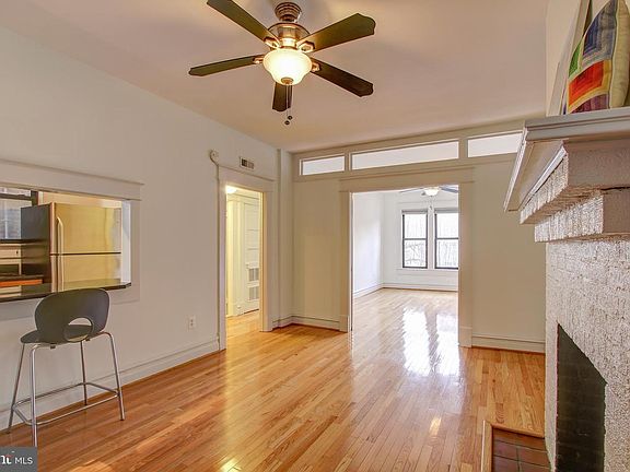 BRIGHT 1 BR + DEN / 1 bath condo 2 blocks from Metro. DEN AS POTENTIAL 2ND BEDROOM: One room with pocket doors can be used as 2nd bedroom (without built-in closet) or as extension of living area. LIGHT: Afternoon light streams in windows that line the entire living room west wall and the bedroom bay. HUNTER DOUGLAS BLINDS open from top and bottom. KITCHEN OPENS to the living area so you can talk with your guests as you cook and entertain. HISTORICAL CHARM: Terrazzo tile floors in entry/hallway, windowed transom between living and dining areas, decorative fireplace, original pocket doors, wood floors. WASHER/DRYER in unit. LOCATION: In hip Blagden Alley neighborhood with coffee shop and restaurants, and short walk to Logan Circle/14th St. nightlife, shopping, restaurants. METRO: 2 blocks to Mt. Vernon Square Metro, and walk to Metro Center!