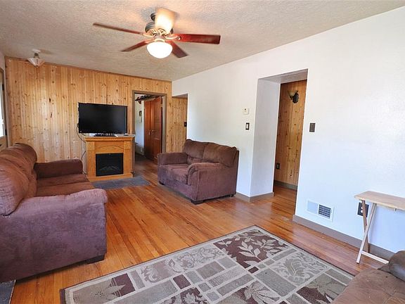 L (o) (o) K at all this comfortable 3 bedroom, 2 bathroom home has to offer!! Starting with a wonderful south Minot location near Town and Country Mall, restaurants, grocery stores, banking, and more. A nicely landscaped lot with colorful cherry leaved trees in the front yard, block patio in the back, fencing, a long concrete driveway that provides an abundance of off street parking, plus alley access! The exterior of the home and double garage features sturdy steel siding, newer windows, and a durable rubber membrane roof. The detached double garage includes overhead door access from the street front as well as from the back alleyway both with raised panel steel overhead doors and auto openers. The garage is heated by either electric or wood burning stove and makes a great workshop and an easy hangout for friends and family. The storage room attached to the side of the garage provides extra storage to free up garage space. The interior of the home offers a relaxing décor with original hardwood floors, spacious living room with a beautiful bow window that provide lots of sunlight and good visibility to the front of the home. An electric fireplace in the living room provides a natural focal point and a great spot for your big screen TV. The stylish main floor bathroom features a custom tiled surround with built-in shelves, jet tub / shower combination, dark wood cabinets that provide an appealing contrast, and plenty of light right where you want it. The main floor also includes two bedrooms and lots of storage options. The kitchen is well designed and ultra-efficient incorporating the amenities of a much larger kitchen including plenty of counter space and lots of cabinets. The kitchen is well equipped with a nice appliance package including a glass top range, dishwasher, garbage disposal, and fridge. The dining area is conveniently located adjacent to the kitchen. The back entry to the home is nicely finished with knotty pine tough-and-groove wall boards that are visually appealing and very durable. An open stairway in the back entry services as access to a full semi-finished basement that provides lots of a clean usable space. The basement incorporates a 3rd bedroom options with egress window, a very nice 3/4 bathroom with a large lighted shower with full glass doors, laundry hookups, workshop area, and plenty of extra storage. GREAT VALUE!
