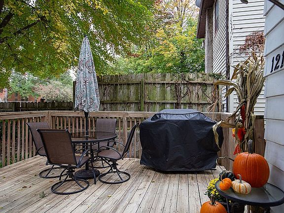 This is a wonderful 4 bedroom home which has many updates and historical charm – built in 1917. Highlights include 4 bedrooms, 2 baths, large living room and spacious formal dining room. Finished basement with family room and large walkup attic. 2 car garage. Lots of storage throughout the home. Move in ready! Both bathrooms completely updated – 2021. Remodeled kitchen. Like new kitchen appliances remain- fridge, stove, microwave and dishwasher. Formal dining room with built-ins and refinished original oak floors. Cozy living room. All upstairs windows and some main floor windows replaced with easy to clean tilt-in features. A few historic windows with original glass remain on the first floor for historic charm. Windows upstairs are HUGE! Basement includes storage, ample living space for family room, laundry, bathroom and storage. Original leaded glass over fireplace mantle. Charming enclosed 3 season front porch with new fan. Nice outdoor living space with deck that connects garage and kitchen and beautiful historic brick patio for entertaining. Wooded lot offers privacy and beautiful surroundings. Detached but spacious 2 car garage. Amazing walk up attic — great storage and future renovation opportunity. New gutters with gutter guards and downspouts on house and garage – 2021. Great neighborhood — easy access to downtown Rock Island and Davenport, bridges and interstate.