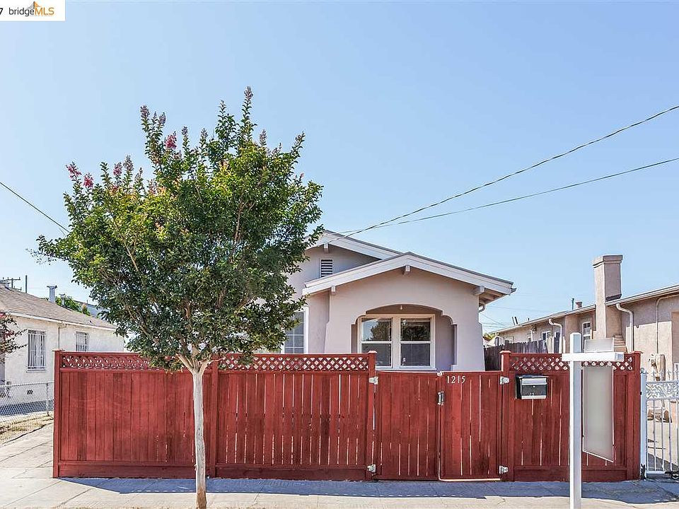 This is a great opportunity to own in an up-and-coming area. This cozy 1920s bungalow in Oakland's Lockwood Gardens neighborhood has 2 bedrooms, 1 bathroom, 809 interior sq. ft. (per public records) and a 4,000 sq. ft. lot (per public records). The front yard is fenced with room for gardening and an inviting front porch. The living room has great natural light, tile flooring, and dual-pane windows. The eat-in kitchen has ample cabinets for storage, a gas stove, and access to the laundry room with washer/dryer hookups. A hallway off of the kitchen leads you to the two bedrooms and one bathroom. The backyard is prepped and ready for your imagination and has a abundant lemon tree that the former owner loved. There's a shed for gardening tools or extra storage, a detached 1-car garage, and a deep driveway that provides parking for multiple cars. 1215 61st Avenue is located near freeway access and other commute options. Open Sunday, 2-4PM!