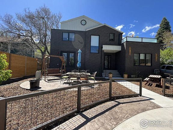Love the open floorplan, natural light, vaulted ceilings and phenomenal location. Takes less than 10 minutes to walk to downtown, the bike path or Chautauqua. Beautiful flatiron views from the backyard and upstairs primary suite. Every modern detail is considered, from the radiant heat floors, the gas fireplace, the solar panels, and more! There is a primary bedroom both upstairs and on the main-floor. The chef's kitchen boasts a stunning granite island and a hidden drawer microwave. The dining room is perfect for entertaining. The newest systems deliver the perfect temperature. Every detail graces this home! Lush landscaping with a circular driveway for ultimate privacy. See architect's plans in attachments to add a garage. Matterport: https://tours.muntzstudios.com/public/vtour/display/2087051#!/