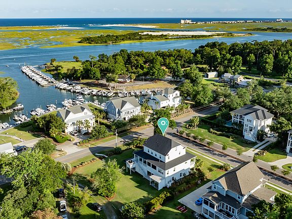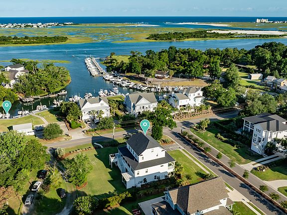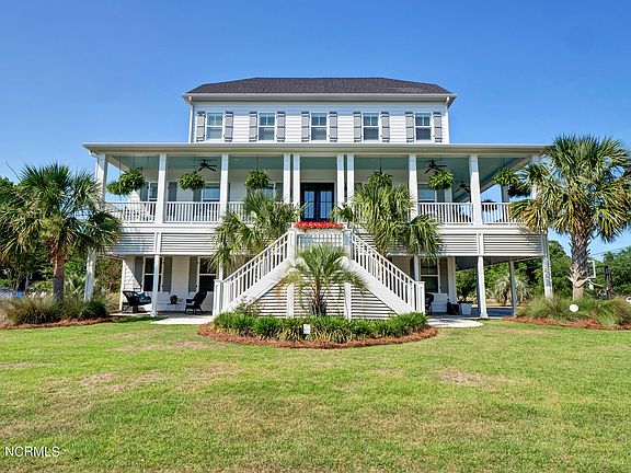 Coastal and Maritime living at their finest. Included with this property is a deep water 28-foot private boat slip at the coveted Middle Sound Marina. Just steps away from the front door, this boat slip provides easy access to some of the most desirable boating destinations in Eastern North Carolina. Less than a 5-minute boat ride to the clear blue waters of Masons Inlet &10 minutes to both Figure 8 Island & Wrightsville Beach, this property is a true boaters paradise. Step off the boat and into the home where beautiful views of the Intracoastal Waterway and distant Figure Eight Island can be enjoyed. Spanning approximately 4400 square feet on a spacious .37-acre lot, this residence offers 4 bedrooms & 4.5 bathrooms. This property is nestled in the exclusive Estate section of Anchors Bend, a welcoming family-friendly neighborhood. The main living level includes the primary bedroom, which includes a walk-in closet & dual quartz vanity; along with an open kitchen, dining, & living area. This living level features large windows & doors throughout which accentuate the natural light throughout the house. Dive further inside & you will discover comfort and entertainment features thanks to the full wet bar and surround sound system, along with two fireplaces while the downstairs office offers a quiet retreat. An elevator ensures accessibility, while LVP flooring & quartz countertops add sophistication. Enjoy lazy afternoons on the covered wrap-around porch or in the downstairs bonus room. Additional features include plantation shutters, coffered ceilings, a hot tub & an outdoor shower. Recent updates include exterior paint in spring 2023. For added convenience, a shared well for irrigation ensures lush landscaping year-round.