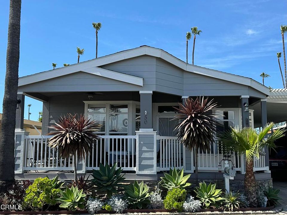 Price reduction! Check it out. Don't miss this gorgeous 2016 manufactured home, two bedrooms and 2 baths, in the luxurious, high-end Ventura Marina Senior Community, across from the Ventura Harbor. Turnkey, move- in-ready! Home features RENT CONTROL and low space rent only $789.52. Primary bedroom features an added bonus room, which can be used as sunroom, office, workout room, etc.; ensuite bathroom with dual sinks and Quartz countertops, huge closet with added shelving, bars and drawers and a solar tube for natural lighting. Kitchen features Quartz countertops throughout; stainless steel appliances (refrigerator, stove, microwave) center island, soft-close drawers and cabinets; Catch the morning sun as you enjoy your morning coffee in your spacious dining room area. There are dual-pane windows with plantation shutters throughout.; beautiful wood-like laminate flooring throughout, upscale tile and Quartz counter tops in both bathrooms; Washer and dryer are included in your on-site laundry room. Home has 4 skylights with adjustable shades for your comfort., as well as 5 ceiling fans. Home has ADA-compliant 36'' doorways throughout, newer hot water heater, newer kitchen plumbing and in-set stairs leading to side entrance from driveway, and 2 sheds. Step out onto your 26-foot covered porch to catch the ocean breeze and watch the world go by--the perfect place to relax and unwind. This beautiful park features a brand-new fully equipped fitness center for residents only, clubhouse, serene lake, events such as Little Theater, Tai Chi classes, Yoga, line-dancing, pool heated year-round, card rooms, billiards, and more. You can be part of the active senior lifestyle and or sit on your front porch (deck) and relax. Palm trees and ocean breezes await you!