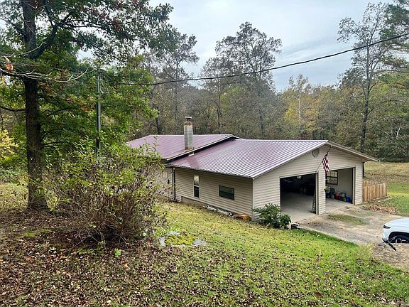 Peaceful, country living can be yours in this 2BR/2BA home, with a full two-car garage, sitting on a unique, beautiful 7 acres m/l. The home has both propane heating and a small woodstove, and comes with a 500 gallon propane tank. Enjoy summers at the year-round running creek that wraps around the side and back of the property. Big beautiful rocks are scattered throughout the area, as well as woods with lots of wildlife. There is a large front yard full of beautiful zoysia grass & a nice spacious garden spot. Other outdoor features incl. fruit trees, a roomy walk-in storm shelter located just a few steps from the garage, an outdoor shed with lean-to, and a large covered carport for your camper or tractor. If its secluded, peaceful, country living you're after, this one's for you