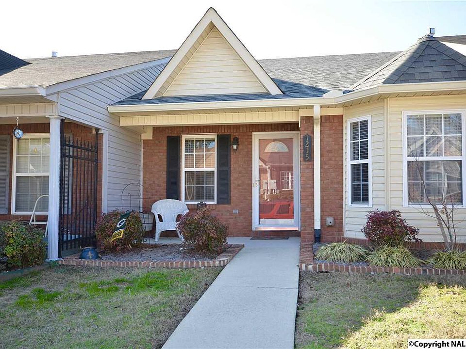 1215 Autumn Lane, Hartselle Alabama-TOWNHOME IS IN EXCELLENT CONDITION! You'll love this updated home with laminate floors that look like hardwood AKA NO CARPET!, Nine foot ceilings, crown molding and gas log fireplace in the great room. Kitchen has beautiful cabinets, pantry, granite, built in desk and large breakfast area. Covered Patio with fenced area. Large Guest room with bay window.Have guest over with extra parking in the back. One car garage with opener and oversized laundry room. Lot's of cabinets and closet space. Move-in ready AND Hartselle City Schools!