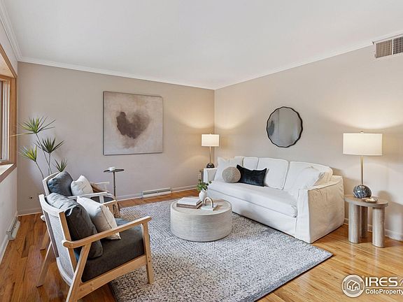 Welcome to this beautiful ranch-style home just a block from the South Boulder Rec. Center, Viele Lake, and trails. The home offers 3 upstairs bedrooms and real hardwood floors throughout the main level. A bright, open living room greets you and provides a bonus bay window for more light and coziness. The open kitchen design is bright with an added skylight that lets in natural sunlight. The separate dining room space opens to the private backyard. The lower basement offers a large recreation room. Additionally, there are 2 more bedrooms, each with expanded, larger windows allowing in ample natural light and a shared 3/4 bath. The basement also has space with abundant storage. The backyard is a natural fenced-in oasis with many trees for privacy and shade, and plenty of space for outdoor enjoyment. Solar (owned) offsets a portion of the energy consumption, making this a great, efficient home. Looking at schools? This home is close to Bear Creek Elementary, Southern Hills Middle, and Fairview High School. The neighborhood offers close and convenient shopping at Whole Foods, King Soopers, many eateries, and more, all just a few blocks away. Don't wait and miss out on this great opportunity to enjoy the coveted area of Table Mesa in SW Boulder.