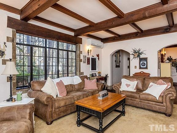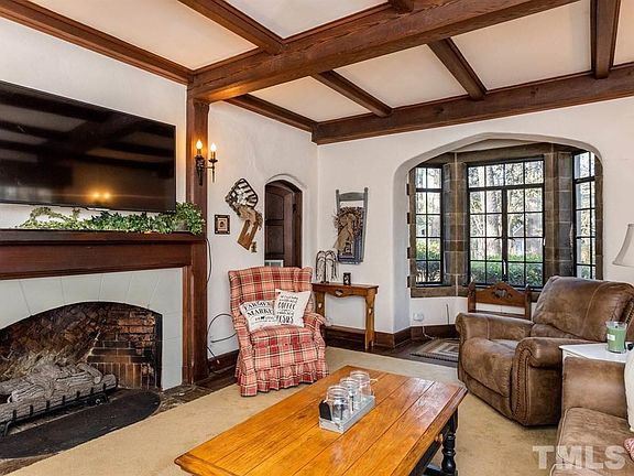 Welcome to this English Tutor home on 1.2 acres. All brick with stain glass insert front door, custom stone accents throughout, coffered ceilings, exposed rich hand cut timbers, brick floor in entryway, hardwood floors, 2 screened porches, extra storage areas, walk-in closet, butlers pantry, single garage, new HVAC 2018, electric 2018, range 2018, bathroom floor and insulation. This home offers privacy but is convenient to everything. This is a true gem!