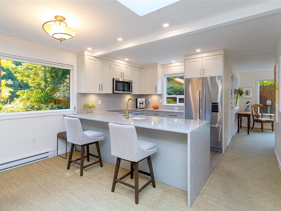 Located in Braithwaite Estates in Cobble Hill, this Cowichan Valley home offers a blend of privacy, space and modern style. Set on a park-like acre surrounded by forest, it’s just minutes to village shops, schools and trails — and only 60 minutes from ferries and airports in Victoria and Nanaimo, plus 45 minutes to downtown Victoria. The spacious main level is bright and open, with skylights and inviting areas designed for gatherings. The chef’s kitchen boasts custom cabinetry, quartz countertops and premium appliances. A fireplace with wood stove insert and heat pump with A/C provide year-round comfort, while the walk-out lower level provides a multi-purpose room, plus a third bedroom, laundry room, and workshop with potential for a second bath. Outdoors, enjoy a sunny deck, raised garden beds, two heated sheds, and a backyard protected by a deer-proof fence — all on a low-maintenance property. Quick possession available — a home that perfectly balances style, function and serenity.
