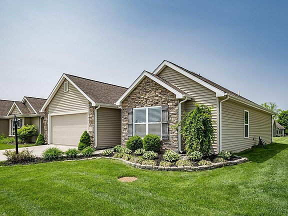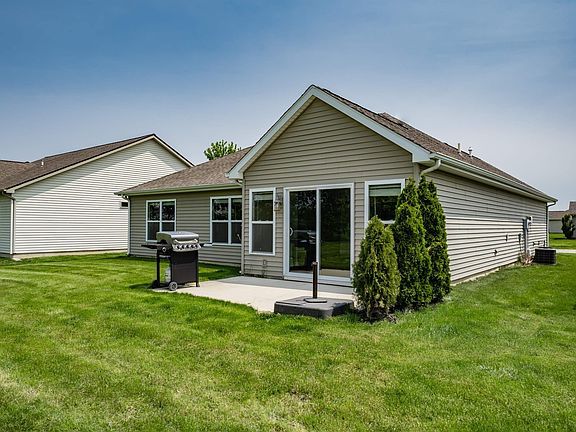 Gorgeous move-in ready villa with updated flooring & large open concept layout in highly desirable SW Allen County School District! Located in the Brenton Glens subdivision just south off Bass Road in a peaceful area with minimal through traffic, this 3 bedroom, 2 full bath home has lots to love & much to offer! Built in 2015 it has been impeccably maintained & refreshed with on trend light gray walls, white trim, wood flooring & aesthetically pleasing rustic modern lighting elements. Sure to charm from the moment you arrive, the classic yet stylish exterior is mix of vinyl siding & brick facade with detailed landscaping & attached 2 car garage. Covered front entry with sidelight opens to bright & welcoming atmosphere complemented by the immaculate clean & tidy vibe—clear pride of ownership evident here! White wainscoting in foyer leads back to expansive main living area with vaulted ceiling & tons of natural light from big picture windows. Inviting great room has lush views of back yard & is open to kitchen/dining area allowing everyone to be together. Chef’s delight kitchen features central wrap around island with sink & bar height seating—bound to be a popular gathering point. There is abundant cabinetry, tile backsplash, SS appliances & pantry. Generous dining nook off kitchen where you can enjoy meals with a view from sliding glass doors to back patio. Sizable laundry with built-ins of kitchen. Spacious primary bedroom includes substantial walk-in closet & en suite with tub/shower. Little details add character such as the floating shelves in both bathrooms & dining nook. Split bedroom floor plan provides a little privacy with remaining 2 comfortably sized, carpeted bedrooms next to the main shared bath also with tub/shower & ample storage throughout. Cement patio out back is perfect for grilling out, dining al fresco or simply kicking back & relaxing. Conveniently located close to shopping, dining & groceries along Illinois Road only minutes away with easy access to I-69 & Jefferson Pointe. This home really is a beautiful, quality built home with a neutral color palette serving as the ideal backdrop to your own personal style. Are you ready to start making memories here? Reach out today—this won't last long!