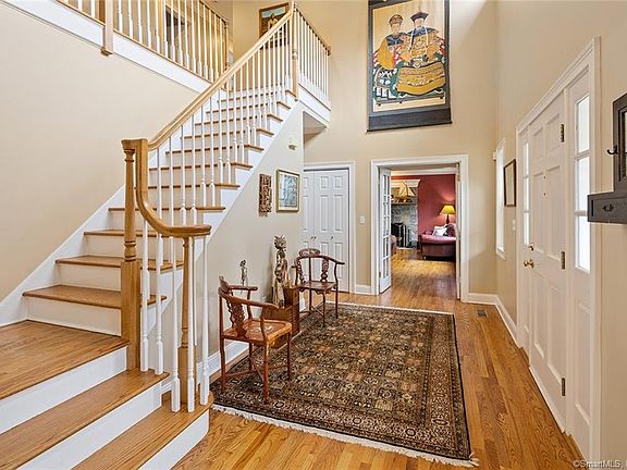 Welcome to this Classic Colonial located on the cusp of both Southport and Greenfield Hill minutes from Southport Village and the Fairfield center. This home reveals an open and flexible floor plan perfect for family, friends and house guests. A welcoming circular drive leads you to a dramatic two story foyer with soaring ceilings which opens directly to the living room with a beautiful stone fire place and shows off the beautiful hardwood floors that run throughout. The Kitchen with brand new wolfe double ovens has granite counters and a large island with bar sink and plenty of room for entertaining. It opens to the great room with fireplace and vaulted ceilings as well as a large eat in kitchen space. Off the back hall is a half bath, Laundry room and private office. Upstairs the master bedroom suite with a tray ceiling has a master bath with a soaking tub and a large walk in closet. Three other bedrooms as well as two more full baths round out the upstairs. Above the garage is the great room with fireplace and a half bath. The partially fenced in property, professionally landscaped by Olivers Nursery, includes a Gunite pool, Hot tub, Patio and fire pit, very private and perfect for outdoor entertaining.
