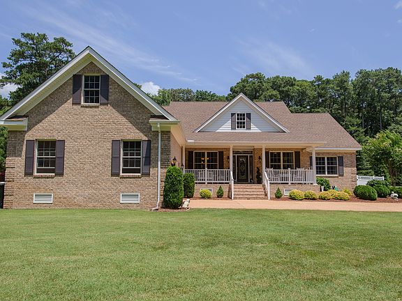 A beautiful custom built brick home in Yorktown, Virginia. Private lane in a quiet neighborhood on a little more than one acre. First floor contains three bedrooms and two full and one half bath, custom built cabinetry, granite counter tops throughout, Anderson windows, stone gas fireplace, built in surround sound, security system, dining room, study, sun room with built in wet bar, screened in porch, oak hardwood floors, tile floor in bathroom and sun room. Second floor contains large bonus room and large storage area that is finished with heating, A/C, and carpeting. Large aggregate driveway leading to a two car garage with cabinets for storage. Built in whole-home generator, sprinkler system run off well water, large in ground pool with pool house, half-bath, refrigerator, microwave, and outdoor shower. Property is beautifully landscaped and interior is immaculate. Home is located in the school zones for Tabb elementary, middle, and high schools.