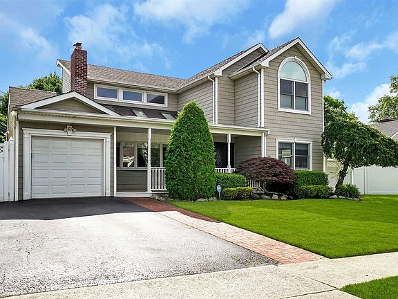 WANTAGH WOODS, Minutes to All! Center Hall Colonial, Covered Front Porch, Vaulted Living Room w/Skylights, Designer Stacked Stone Fireplace, Beautiful Oak Hardwood Floors thru-out home, Eat-In Kitchen w/Maple Cabinets & Granite Counters, Ss Appliances, Huge Family Room Opens to Backyard, 2 Br's on first Floor, 2nd Floor: 3 Master-Size Bedrooms, Laundry, Vaulted Ceiling in Master Ensuite, Central A/C, Igs, Finished Basement w/Tile Floor and Full Bath, Updated Electric Panel Box w/Sub Panel on 2nd Flr, Updated Roof/Siding. Awesome Deep 131' Private Property. Driveway fits 4 Cars, This House Has All The Wants! Wantagh Schools
