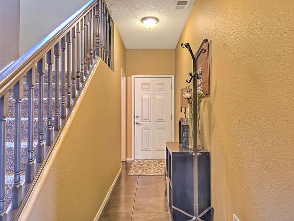 Welcome home to this well cared for beautiful home in the highly sought After Vista Del Norte Subdivision. Close to freeway access, walking trails, parks, entertainment, and many more amenities in the area. This 3 bedroom 2.5 bathroom home has a great floor plan with all the bedrooms located upstairs. The master bedroom is spacious with a walkout balcony with great views of the Sandia Mountains. The downstairs has tile throughout and plenty of room for entertaining. The back yard is fully landscaped with a playset and a hot tub to relax after a long day.