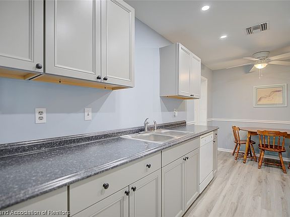 Very well maintained two-bedroom, two-bath home located close to everything in Sebring, FL. This home has excellent curb appeal with large, mature trees, new paint, and a cute front porch. Inside, the home is bright and airy, with calming colors and modern vinyl flooring throughout. The kitchen has been fully updated with new cabinets and countertops and is accented with white appliances. The primary bedroom has a fully remodeled bathroom with continuous tile, a new vanity, and updated lighting. A large bonus room leads to a screened-in porch that overlooks the fenced backyard. The property also has a lot of extras! Metal roof, irrigation, gutter system, and storage galore! Schedule a showing quickly, this one won't last long!