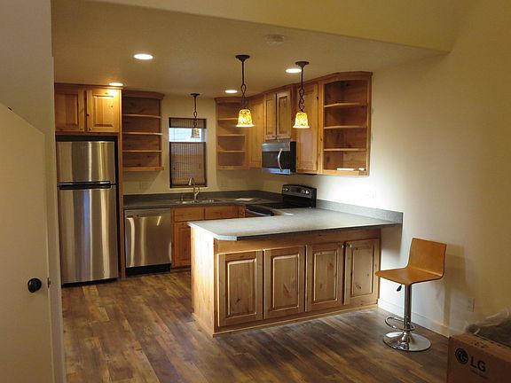 Beautiful little off-street house. Natural woodwork, lots of storage, open floor for living space and kitchen. Built in 2018. Includes kitchen peninsula with eating bar. Upstairs bedroom has carpet and double closets with occasional view of Mt Hood. All new appliances include washer & dryer, dishwasher, refrigerator, range, garbage disposal, micro-hood, and air conditioning. Small concrete patio wrapping the front porch. Parking space by the unit on our shared gravel driveway. Rent includes all utilities and garbage. Lease is 1-year term. Availability date is August 1, 2025. Sorry, no pets - firm policy. No smoking anywhere on the property. Rent includes utilities and garbage disposal.