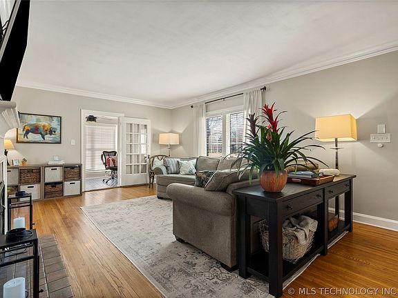 This absolutely charming, three story + full basement home in Maple Ridge offers flexible living, authenticity and elegant ease at its finest. The first floor features a formal living room with fireplace, formal dining room with corner built in hutches, home office with exterior entry, granite kitchen with cozy nook and a half bath next to the basement entrance. The second floor features three bedrooms with spacious closets and one full bath. The third floor is accessed through the NE bedroom and features a loft style, spacious retreat with heat and air, perfect for a game/media room and/or a second home office. original hardwood floors throughout all levels. The home also boasts original hardwood floors throughout all levels of the home, and a guest quarters with a full bath and NEW hot water tank (not included in house square footage) adjacent to the two car detached garage. Additional upgrades include: brand new $20K Trane HVAC system, ATT fiber connection, Ring home alarm system and cameras, updated lighting and exterior & interior paint and new 6ft decorative fence and 8 ft privacy fence for backyard living seclusion. Close to Brookside, The Gathering Place, Philbrook and Children's Museum.