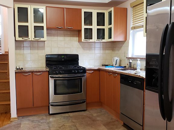 Hot Deal Amazing 3 bedroom 1.5 baths split level apartment in a private house located on a quiet, tree lined street. The first thing that will impress your sight is an extra large Formal Living Room/Dinning Room. Adjacent to it is Large renovated kitchen with stainless steel appliances, including dishwasher, microwave. Master Bedroom can fit King/Queen size set, in addition it has a walk-in closet and in suite bathroom. Second bedroom is almost the same size. Both bedrooms are facing serene backyard. The third bedroom is slightly smaller, has access to the private balcony. The unit offers plenty closet space, secure entrance, backyard, Landlord pays for heat and hot water. Property is located next to shopping and public transportation, Houses of Worship, Great Schools. Tenant screening process includes verification of income and credit Owner pays gas, heat, hot and cold water. Renters responsible for electric and cooking gas. No smoking, no pets.