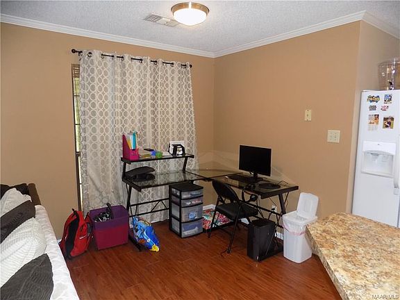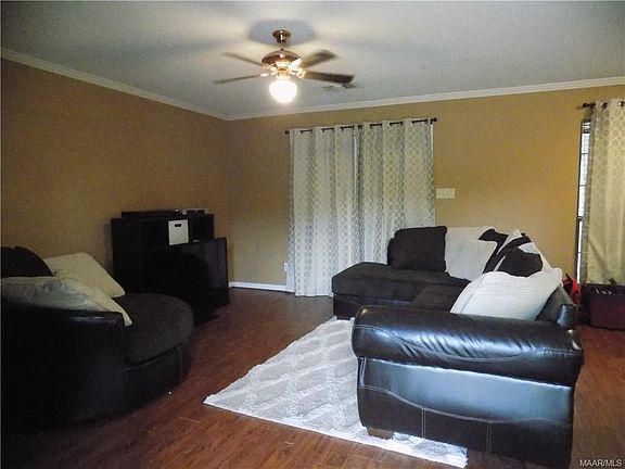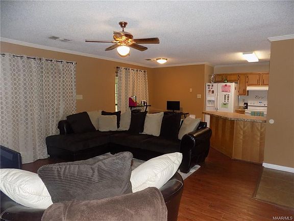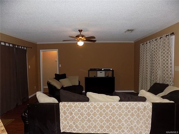 Two bedroom, two bath home located between uptown and midtown Prattville. Kitchen has tile floor and is set up in "U" shape with dishwasher, new countertops with an eating area and display space above cabinets. Off the kitchen is the dining area, or office space as it is being used now, which adjoins to the living room. These spaces have wood looking laminate floors and both are open to the kitchen. The washer and dryer are hidden in the inset space off the side of the living room. Through the hallway to the far left is one bedroom with a walk in closet and new carpet. Next to this bedroom is a full bath with tile surrounding the tub/shower combo. On the other end of the hall is the main bedroom, new carpet here as well and a large attached bath. The main bath has a double vanity, linen closet, open walk in closet and tile surrounded garden tub/shower combo. This split floor plan makes for privacy and there is no wasted space throughout this home. Interior and exterior have a fresh coat of paint and new shutters installed outside really warm up the look of this home. The back yard is fenced and there is a deck. The driveway runs to the side of the home and there is a back up pad, making coming and going easy.