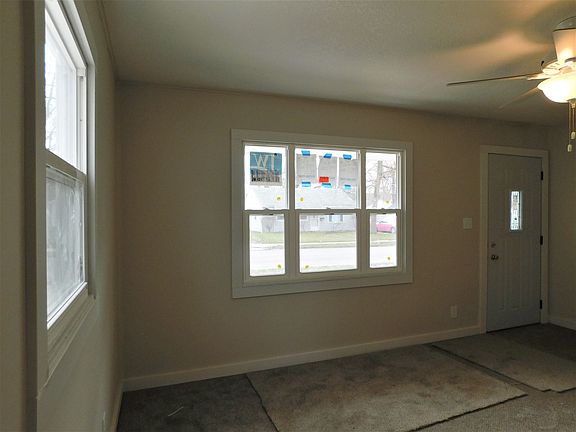 Impressive updates say welcome home. Enter through the new decorative front door into the spacious living room with large new windows, new ceiling fan, enjoyable all new flooring and paint throughout. The list continues with a new drive way some of the side walks replaced, mulch, new exterior paint on the the garage new overhead door. All this is new too-updated electrical panel, gas furnace, all plumbing. Other improvements include a second layer of roof shingles, most new ceilings, some new dry walled walls. Kitchen gutted and tastefully redone with new cabinets, counters, deep sink, elegant faucet, spacious and convenient eating bar/work space, new refrigerator, stove and range hood. Bathroom equipped with new tub surround, stool and sink. In the bedrooms the sliding barn door closet doors and ceiling fans are a tasteful touch. Large utility/storage area off kitchen is handy and gives access to the fenced back yard through the new entrance door. Taxes will raise with owner occupant to approximately 1% of value if the homestead and mortgage exemptions are filed.
