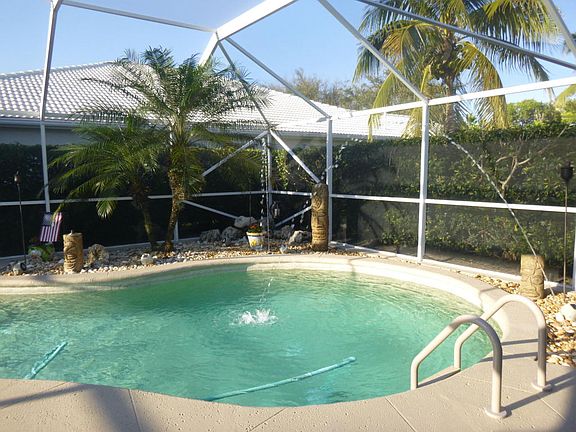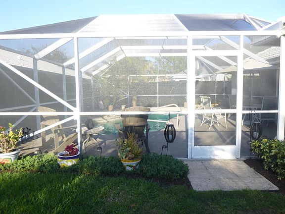 Lush landscaping leads you to this beautiful ranch style home. As you approach the entry, you will be greeted by a beautiful custom entry door with etched beveled glass. This 3br PLUS den offers upgrades galore! Your kitchen boasts wood cabinetry, granite countertops and tumble marble backsplash. The kitchen opens to your breakfast cafe and family room. Your sliders open to your roofed and screened lanai over looking your private paradise! Beauful heated pool. You will never want to leave your home. Back inside, your master offers two walk in closets and a luxurious master bath with granite, two vanaties, garden tub and separate shower. Two other bedrooms split from master for privacy.Home has generator hookup , central vac, accordion shutters, painted in and out less than two years.