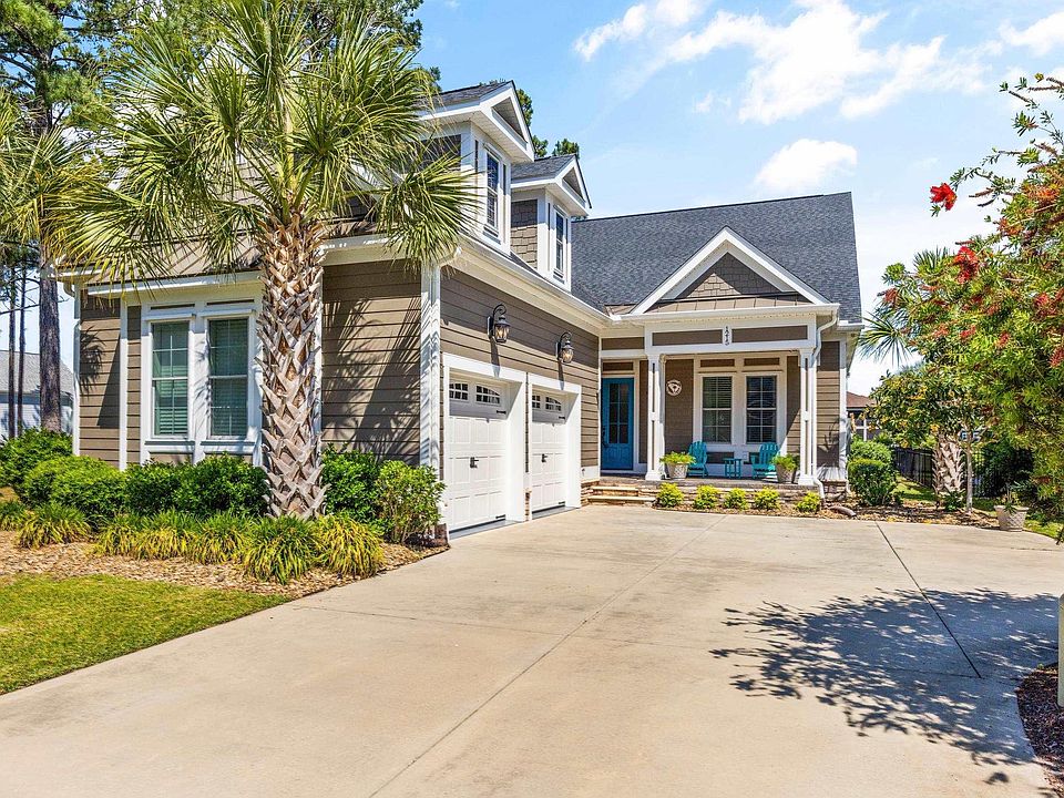 welcome to paradise! Situated in Waterbridge, a highly sought-after gated community in Carolina Forest, this remarkable home is impeccably constructed and maintained. Every detail of the home is carefully thought out, showcasing exceptional craftsmanship. The upstairs gym can serve as a playroom, office, media room, or even a fifth bedroom.The first-floor master bedroom is elegantly designed.. The master bath has a large tiled walk-in shower, double vanity, quartz countertops, and a custom closet with builtin cabinetry. The homes stunning kitchen is equipped with double ovens, a gas cooktop, built-in microwave, pot filler, quartz countertops, and overlooks the open living and dining areas. The spacious laundry/mudroom is a homeowner's dream. The great room exudes warmth and comfort with its gorgeous coffered ceiling and fireplace. The second-story living area features a deck with views of the backyard and beautiful lake views, perfect for enjoying sunsets. An added bonus is the Carolina room located off the dining room, large walkin pantry, and office space. The fenced backyard features a private in-ground pool, while the covered patio off the great room includes a built-in outdoor kitchen and motorized screen. The artificial turf around the pool add low maintenance and stress free outdoor living. Additional features include a whole house generator, custom hurricane shutters, and a whole house water filter, there is even a golf simulator in the garage. Waterbridge is a gated community in the heart of Carolina Forest, offering resort-style amenities such as the largest residential pool in the state, a sunken fire pit, hot tub, lap pool, fitness center, tennis/pickleball courts, boat/kayak launch, sand volleyball court, bocce, and boat storage. Live every day like you're on vacation! Don't miss out on this dream home with countless features. Schedule your showing and ask your agent for a list of upgrades in this home.
