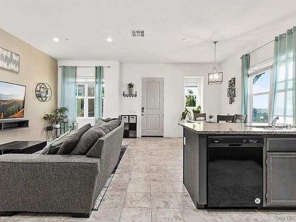 Beautiful Corner Unit with Modern Upgrades! This spacious home offers great curb appeal with a turf front yard and plenty of street parking right out front. Inside, enjoy 10-foot ceilings, tile flooring downstairs, and abundant recessed lighting. The upgraded kitchen features granite countertops, a stylish backsplash, and a walk-in pantry. The attached garage includes convenient overhead storage racks. Upstairs, the expansive primary suite boasts clear views, a large walk-in closet, a separate soaking tub, and a separate shower. Additional highlights include an upstairs laundry room and new ceiling fans throughout. Located in a desirable community with 2 pools, a fitness center, and a community clubhouse. Close to top-rated schools, shopping, dining, parks, and easy access to Interstate 805 and SR-125.