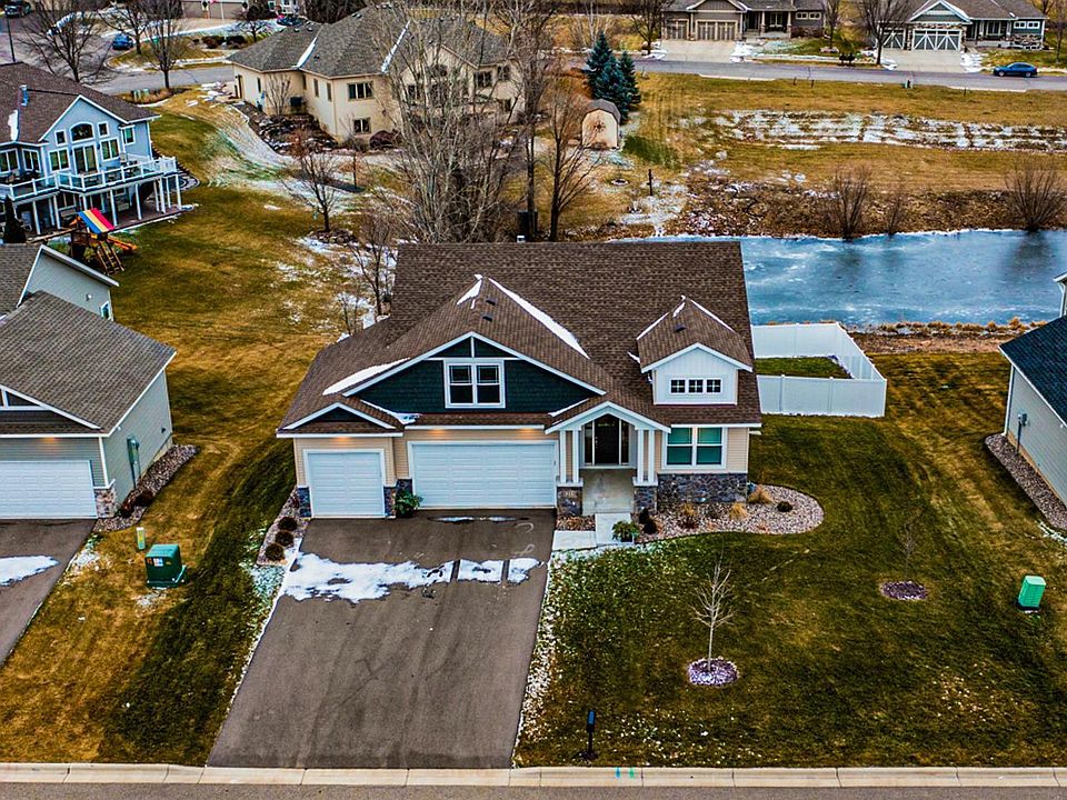 Must see newer construction in an upscale development with new construction homes still be being built. Your new home features 3-bed, 3-bath with luxury living throughout - Stunning gourmet kitchen features gorgeous granite countertops and large center island perfect for meal preps, parties and enough room for family dining. Don't miss the full-size SS side-by-side refrigerator/freezer, pantry and more! Fabulous deck off the kitchen with views of the pond provide lots of natural sunlight with mostly private views. You'll love the main level laundry, with main floor primary bedroom. The open concept KT, DR and LR with fireplace offer the convenience of single-level living - Perfect for summer AND winter entertaining! The LL features an exceptional family room with ANOTHER fireplace, a 3rd bedroom and large unfinished area. Only a walk away from Legacy Golf Course and nearby Schattuck/St. Mary's. Couldn't touch this price with new construction in same neighborhood.