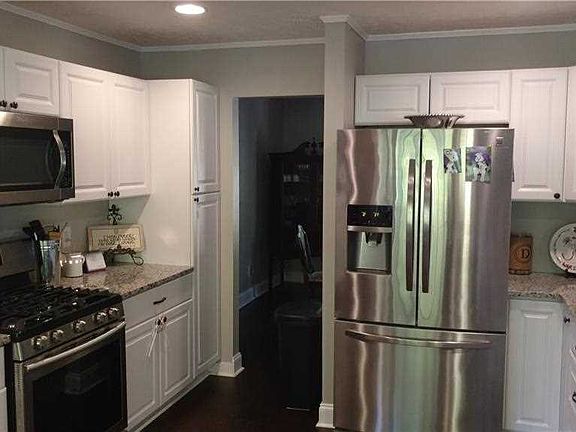 Fresh updates throughout the home. New roof, kitchen layout modernized with granite countertops, new cabinets, new fixtures, and new appliances. Master bedroom and bath downstairs next to large den. A second guest master bedroom and bathroom is located upstairs along with two other bedrooms. Outside has been painted, including all trim work. Inside was painted about a year ago. New landscaping front and back yard. Large wooded area behind home.