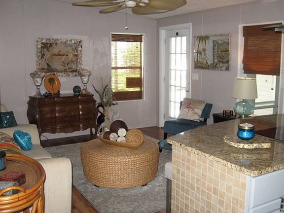 SIMPLY GORGEOUS AND UNIQUE! QUALITY UPGRADES!............ This beautiful home is located in the 55+ gated community of Four Lakes Golf & Country Club. The homes in this community are on lot leased land. Monthly lot rent of $611.95 will allow you and your guest to access the amenities of the community............. This unique home features a very large great room, living room, dining area, den, two bedrooms, and two beautiful baths. The oversized great room features a bank of windows overlooking the golf course and pond. This room also has a few surprises that I will save for viewing! This entire home is full of "wow me" surprises............. The remodeled kitchen features wood cabinets, granite countertops, tile backsplash and all G.E. Professional appliances. This kitchen is every woman's dream! Actually, this home is every couple's dream!............ The master bedroom, with a large closet and the remodeled master bath with a large tiled shower and his and her sinks is simply beautiful.....actually every room in this home is beautiful............. You will fall in love with the 396sq.ft. screened Florida Room with gorgeous views. This is a great room for entertaining............. Did I mention this home has a 13 1/2' X 23' garage and an 8' X 14' golf cart shed which houses the sharp golf cart with C/D player and fan, Yes, it is included with this sale............. The roof and heat/air are 2014 and 2015 respectively. All windows, except four, are newer tilt windows. All entry doors are steel doors with pocket screen doors. Come see it....you will love it!