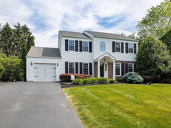 Welcome to 1215 Mayfair Circle in the sought-after neighborhood of Hamlet Hill in West Goshen Township. This home has it all; a large private yard at the end of a cul-de-sac, custom kitchen and large great room plus so much more. Fall in love as soon as you drive up to this traditional white colonial home with a manicured yard. At the front door you get a glimpse of the beautiful great room at the back of the house, but first let’s explore. Head right from the two-story light filled foyer to a game room/gathering space for fun nights with the family or go left to the cozy sitting/music room. Notice the upgraded wainscoting, chair rail molding and crown ceilings throughout these spaces. Venture into the heart of this home. A beautiful dining room complete with a 2-sided fireplace. The dining room opens up to large, upgraded kitchen complete with custom cabinetry, granite counters and stainless appliances. The kitchen island gives you ample space for baking, preparing meals and serving holiday dinners. Imagine entertaining your friends and family in this welcoming space. The best feature of the main floor is the gorgeous great room on the other side of the fireplace. You’ll love this large sunny room with views of the expansive backyard. A great spot to relax by a cozy fire or host friends for football Sundays this fall. Notice the oversized windows on three sides of this room. Double sliding doors lead out to a paver patio and the beautiful green spaces beyond. Set up a private firepit in the backyard. The options are many. Back inside to the right of the dining room you’ll find a laundry space, powder room and the entrance to the garage. This home has beautiful hardwoods throughout much of the lower level with carpeted spaces in the cozy front rooms. As you head upstairs you will find a large master bedroom. This room offers a walk-in closet and private master bathroom. Two additional bedrooms and hall bath complete this upper level. Head back downstairs to the fully finished lower level. Here you’ll find more living space, options for a home office and workout area. Storage space is not a concern, as you’ll find this here as well! Don't miss this beautifully upgraded home conveniently located near major highways as well as a short drive to downtown West Chester for restaurants and shopping! Don't miss this one. Schedule your showing today.