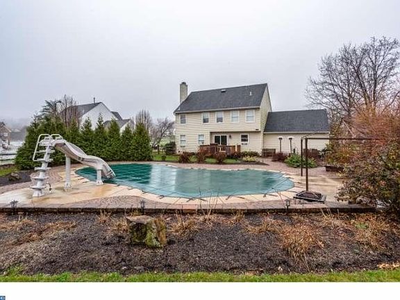 Gorgeous two story with many updates featuring fantastic lot in sought after Twin Ponds Community. Enter stunning front door from sitting porch to hardwood entry to Formal Living Room with hardwood, Formal Hardwood Dining room with great light from front windows, hardwood hallway to open floor plan eat-in kitchen and warm Large sitting Room with fireplace. Separate laundry is located off kitchen area. Second floor has updated Hall Bath, three bedrooms with plenty of room and storage, and an exquisite Master Suite all updated with full bath and walk-in closet and extra closet. Stunning home also has two car garage with new stylish doors, and paver walkways leading to a huge entertaining area, beautiful Fronheiser In-Ground Pool with landscaped paver walls surrounding and large shed for lawn and pool storage. Home has a newer roof, newer heating and cooling systems, and on demand newer hot water system. This is a superb home schedule showings today!
