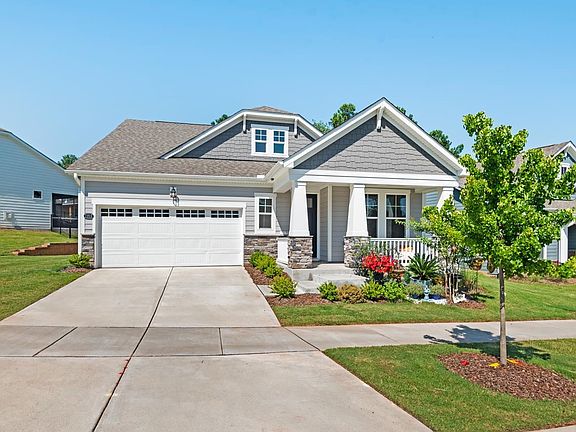Beautiful home in popular 55+ community, Creekside at Bethpage. Pioneer floor plan that is very popular. 3 bedrooms (Flex Room has a closet and could easily be converted to a bedroom by replacing glass panel doors presently there). This home has many upgrades including crown molding and chair railing in the foyer. Upgraded luxury vinyl tile flooring from the foyer to the dining room area in the back of the home. Gourmet kitchen with wall oven and gas cooktop. Quartz countertops in the kitchen (kitchen sink features no touch faucet. Large family room area. Covered patio in the rear of the home. Single story home in a neighborhood full of amenities, tennis and pickle ball courts, Wonderfull amenity center with kitchen, gym, multi-purpose rooms, pool tables, great room for entertaining. Walking trails and side walks throughout the neighborhood for safe and easy out door walking. Creekside is close to all major highways, I-40, I-540. Also 10 minutes from the RDU International Airport, Brier Creek Shopping Center and many wonderful restaurants.
