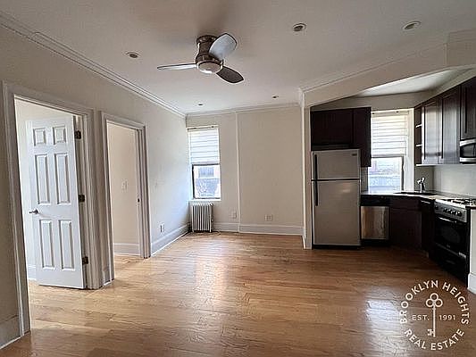 Two Bedroom in well maintained building. Top floor, 3 flight up. Equal size bedrooms - both can fit a full-size bed, and both have closets. Bike racks conveniently located at the entrance hallway of the building which makes it easy to use your bike on daily basis. Updated open kitchen with dishwasher. Large living room big enough for a dining nook and living area with exposed brick. Located 0.2 mi (4min walk) from Myrtle Ave station for the M, J, Z train lines. Citi bikes located right across the street for the active commuters. Heat & Water included. Pets will be consider, pet fee may apply. Available 5/1. Good credit history is a must. Income over 100k or strong guarantor (200K+) Email for a viewing or more information.