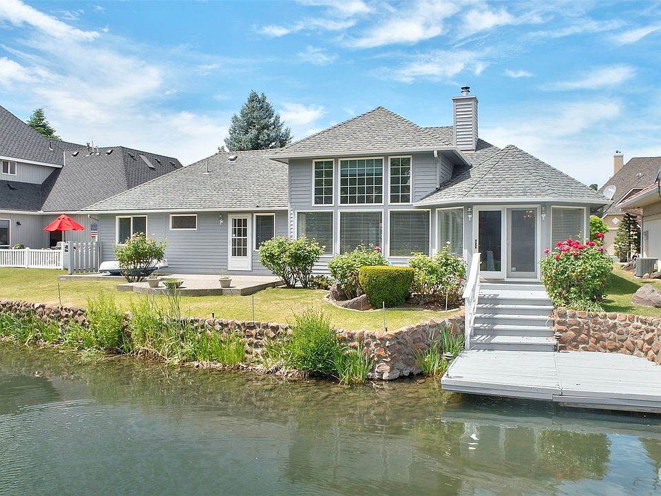 Bring out the Paddle Boards Located within a quiet gated community, owners have access to the lake and a walking path to the Greenway. Entrance opens with cathedral ceilings and an abundance of windows to bring in natural light to living, kitchen and dining areas. Gas fireplace centers the main living area. Dining off the updated kitchen opens to an extended patio for outdoor living. Single level design puts all bedrooms on the same floor. Primary bedroom with walk-in closet and full bath as well as a door to the deck and the water. New roof and exterior paint completed in 2023. This home comes with a lake and a paddle boat!