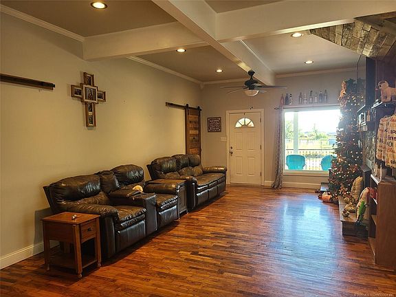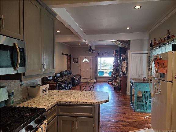 Charm galore! This home was renovated in 2019. High ceiling with beams. Lovely fireplace, hardwood floors. Master bath has walk-in shower. Large utility/mud room. Nice size back yard with deck.