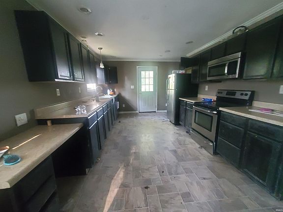 Rambler style home. Small covered front porch. Open patio in the back. Inside features 3 bedrooms and 2 full bathrooms, kitchen/dining combo and living room. There is a pantry area between the kitchen and main bathroom.