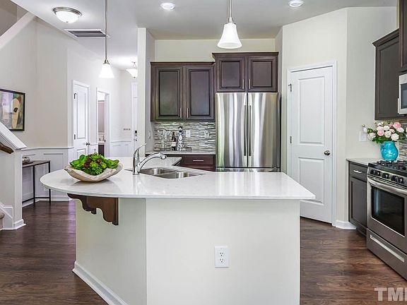 Lennar most popular cozy, open Abbey plan/smart WiFi Thermostats /Green Certified home with 3 BR /2.5BA /1 car garage, covered screen porch, large quartz island and countertops, hardwood throughout the first floor, 9' ceilings upstairs and down. Owner's suite includes BR sitting area and Master bathroom with ceramic tiled shower and floor, double vanity. Lush private wooded yard. Community swimming pool. Convenient to Brier Creek Shopping Center, Country Club, RDU Airport, I-540, Frankie's Fun Park.